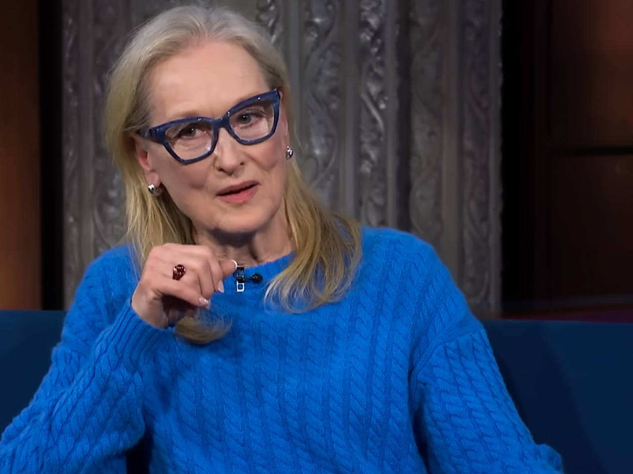 Звезда «Дьявол носит Prada 2» пришла в студию к ведущему Стивену Кольберу, чтобы обсудить предстоящую премьеру фильма.